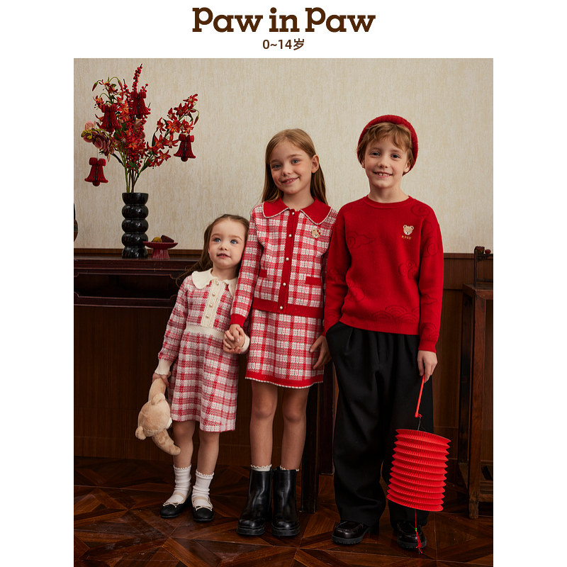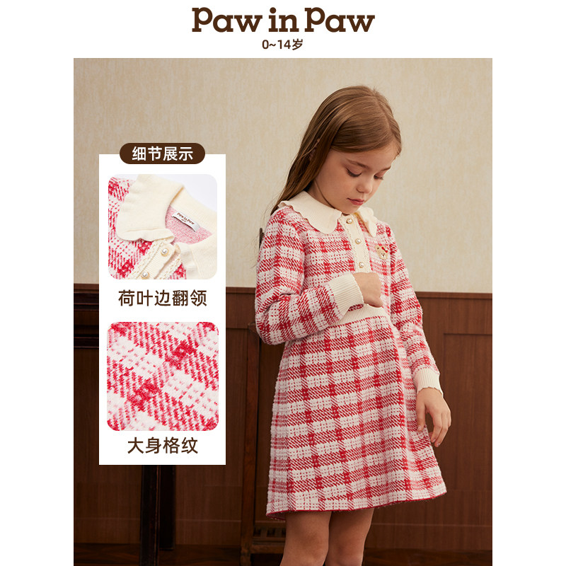 【新年系列】PawinPaw卡通小熊童装25年春新女童格纹连衣裙套装