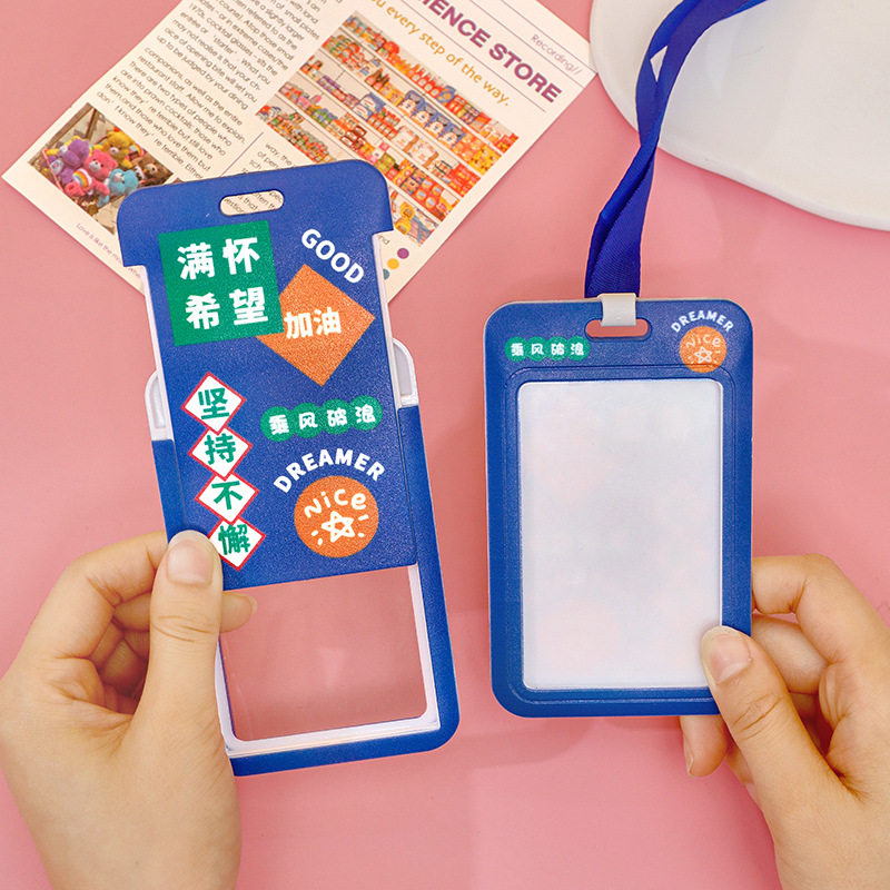 卡通文字滑盖卡套 学生校园饭卡带挂绳证件套儿童高颜值胸牌卡套