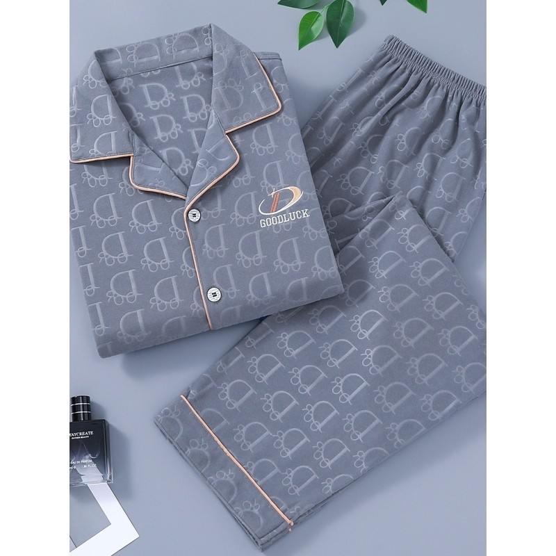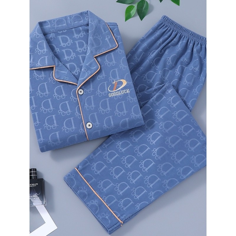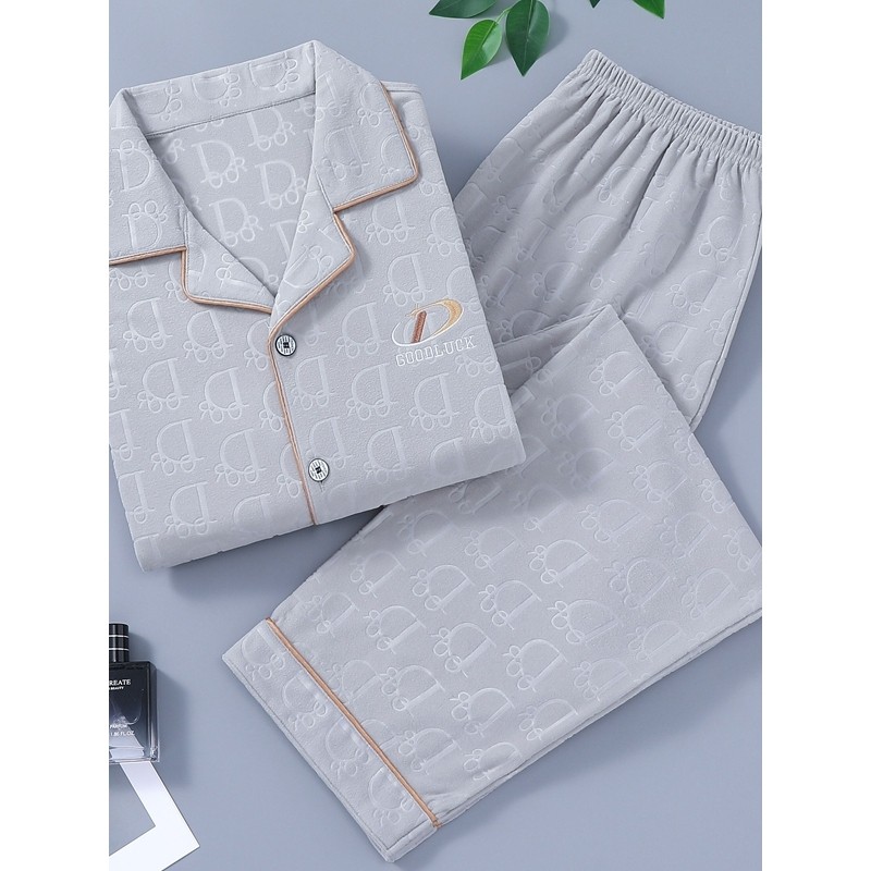 浪莎2025年新款睡衣男士夏季纯棉短袖长裤家居服男款夏天夏款套装