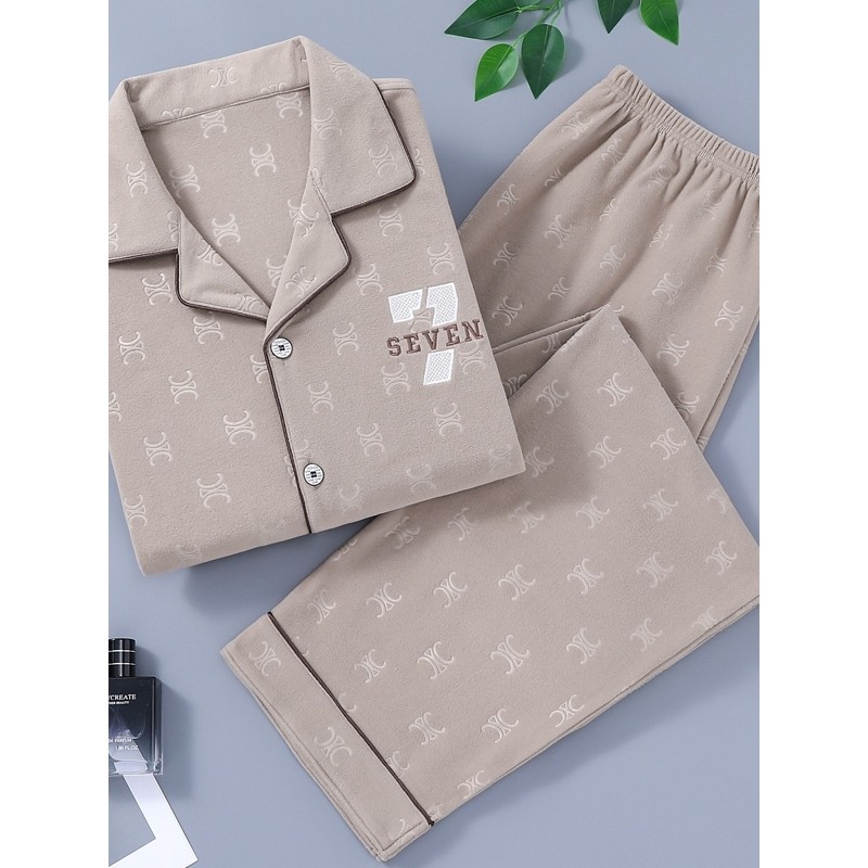 冬季珊瑚绒男士睡衣三层夹棉加厚加绒法兰绒秋冬款家居服保暖套装