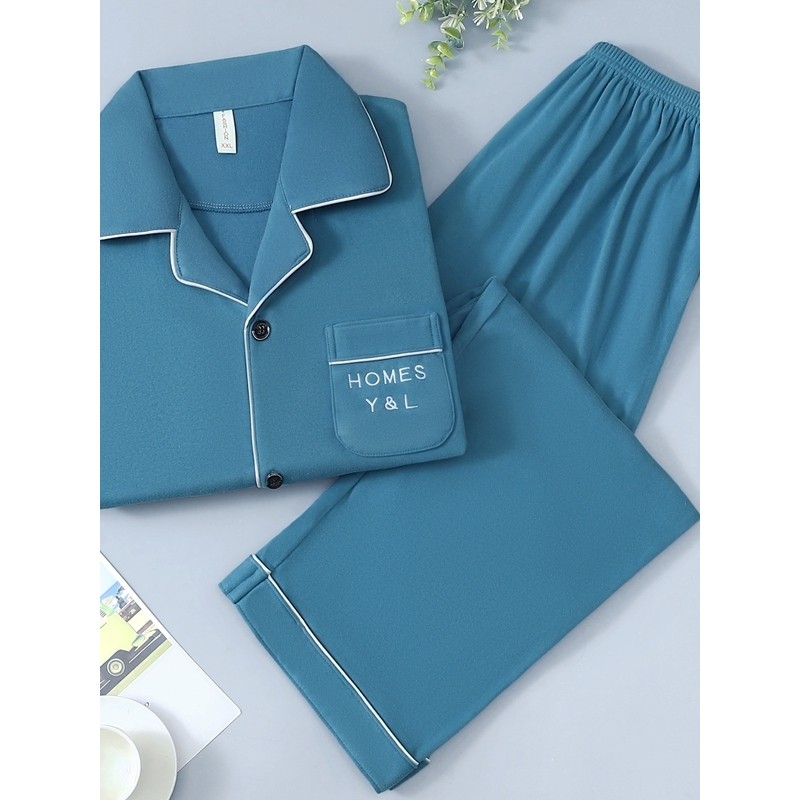 安比斯情侣睡衣舒适纯棉秋季女长袖男女同款休闲家居服套装可出门