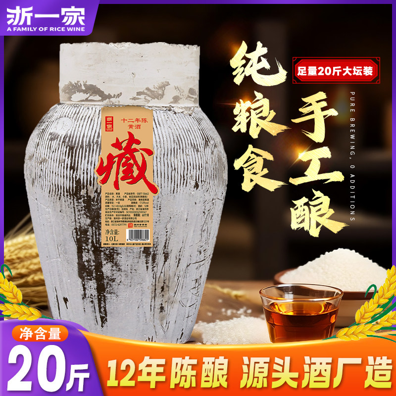 浙一家坛装花雕黄酒12年陈老酒加饭酒做菜料酒浙江黄酒糯米酒10L