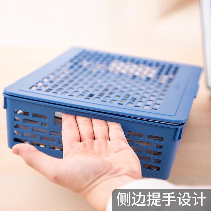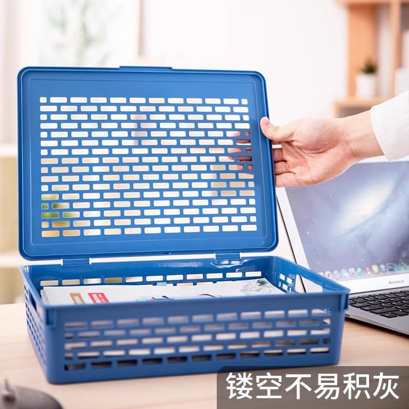 得力网状公文篮文件篮翻盖文件筐A4收纳筐架子资料整理栏多层蓝色