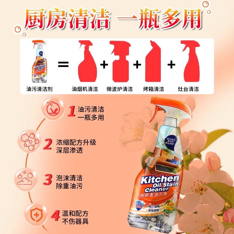 厨房油烟机去重油污顽固污渍强力除油垢清洗油污净清洁剂去油瓷砖