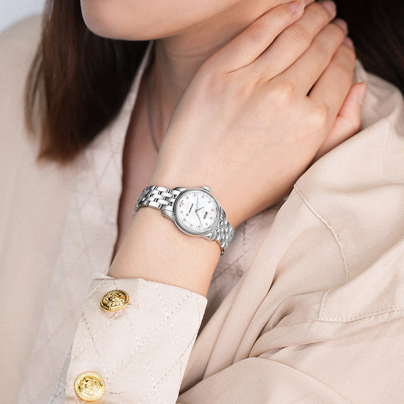 真钻镶嵌珍珠贝母表盘 独立日历窗口显示