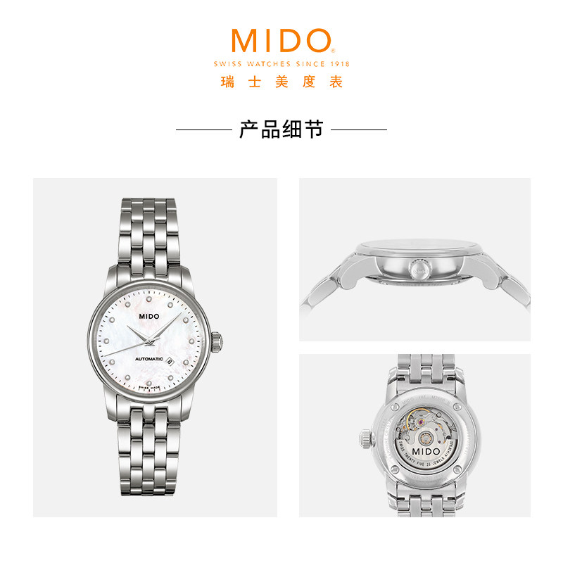 Mido美度手表女士贝伦赛丽系列真钻贝母盘全自动机械腕表女款礼物