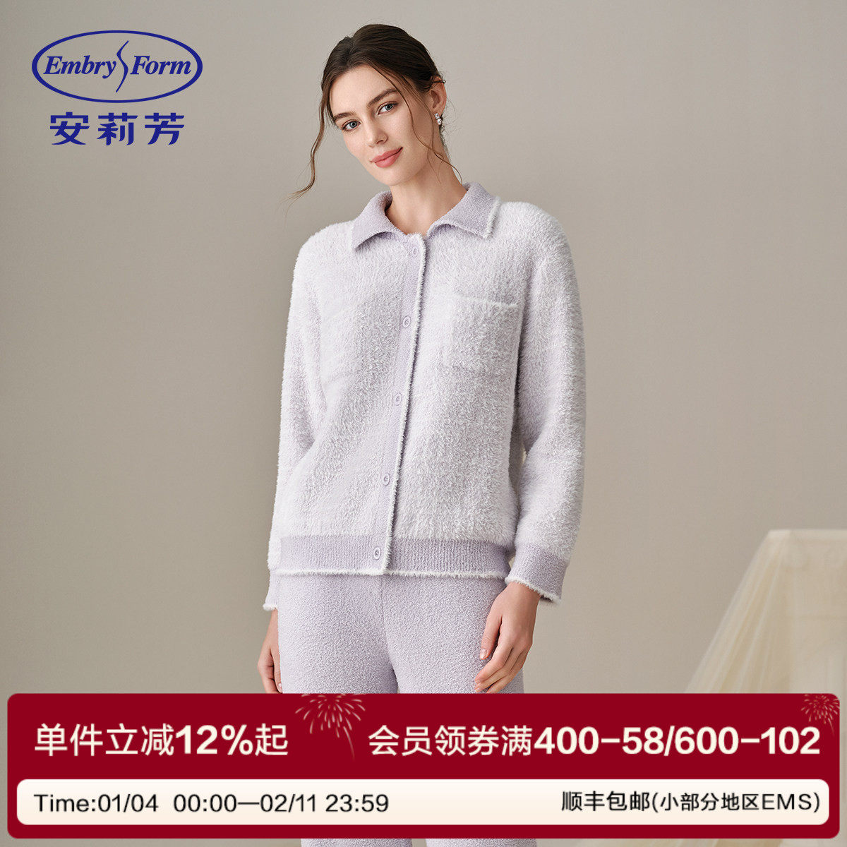 安莉芳女士家居服套装小香风可外穿暖衣睡衣秋冬款半边绒加绒加厚