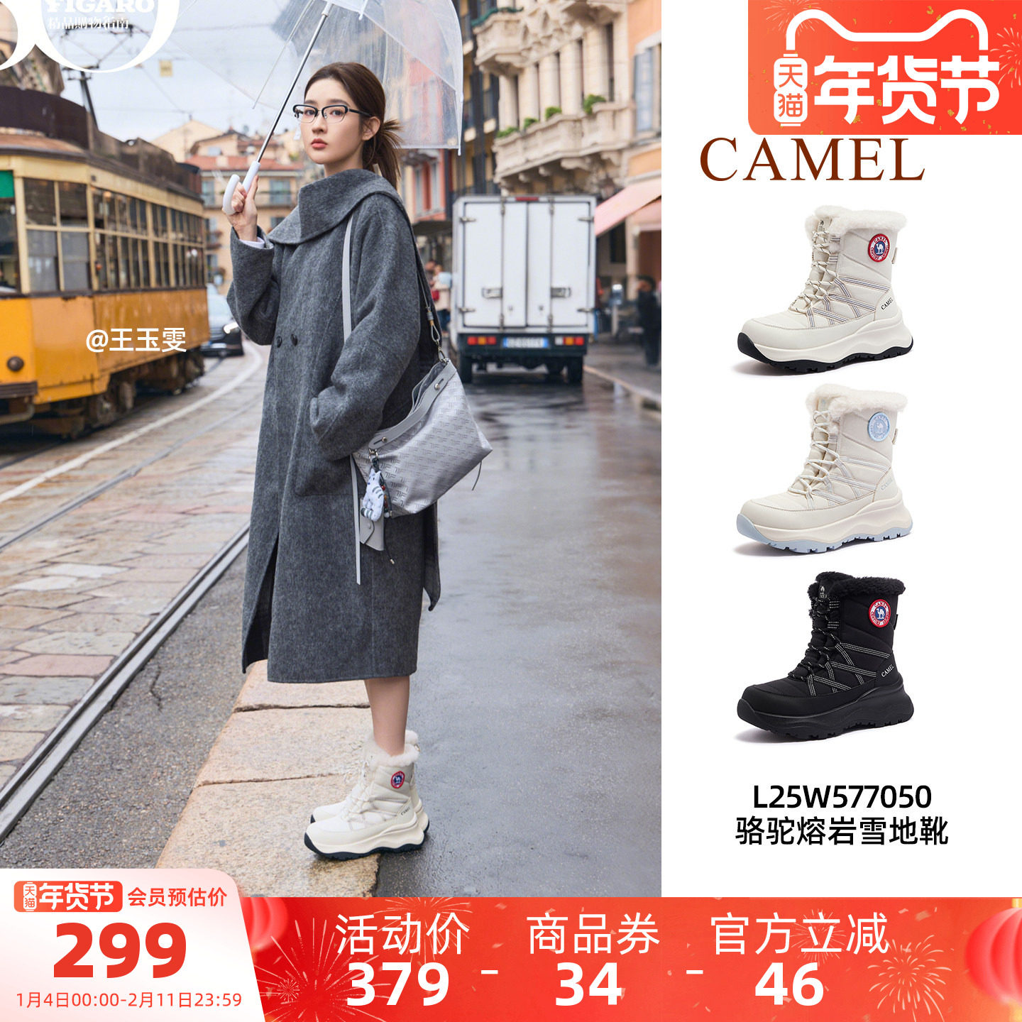 骆驼熔岩雪地靴女鞋2025冬季新款户外短靴女增高加绒东北保暖棉鞋