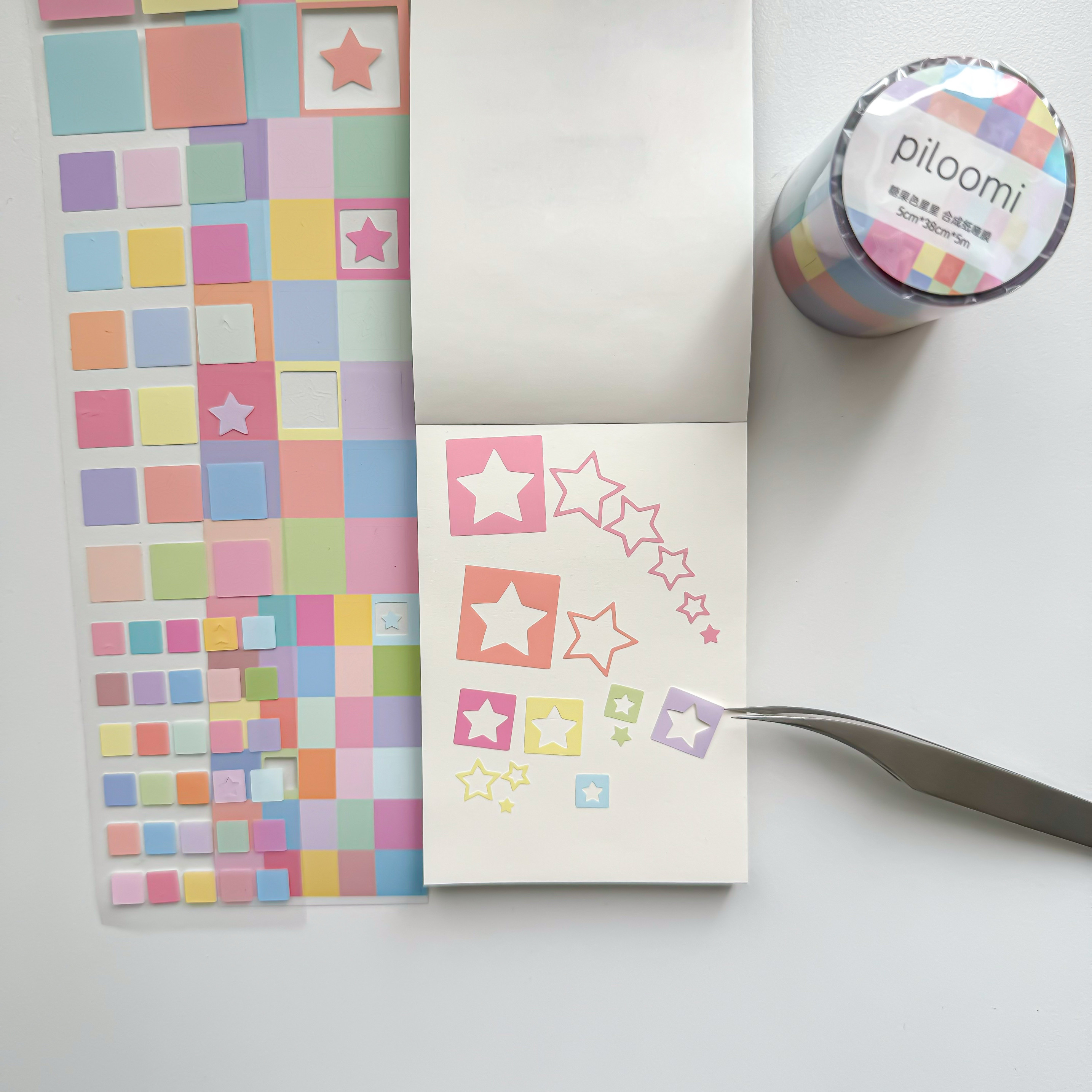 piloomi糖果色星星框框圈圈基础贴纸卷分装套圈圈基础图案合集