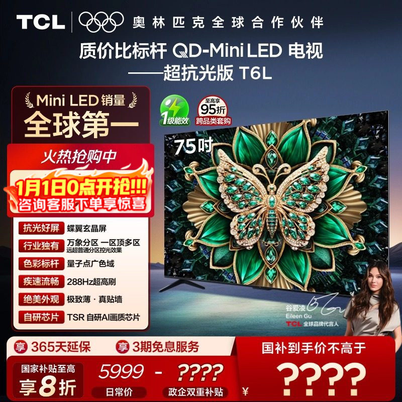 TCL 75英寸T6L QD-Mini LED 万象分区 tcl电视机以旧换新补贴官方