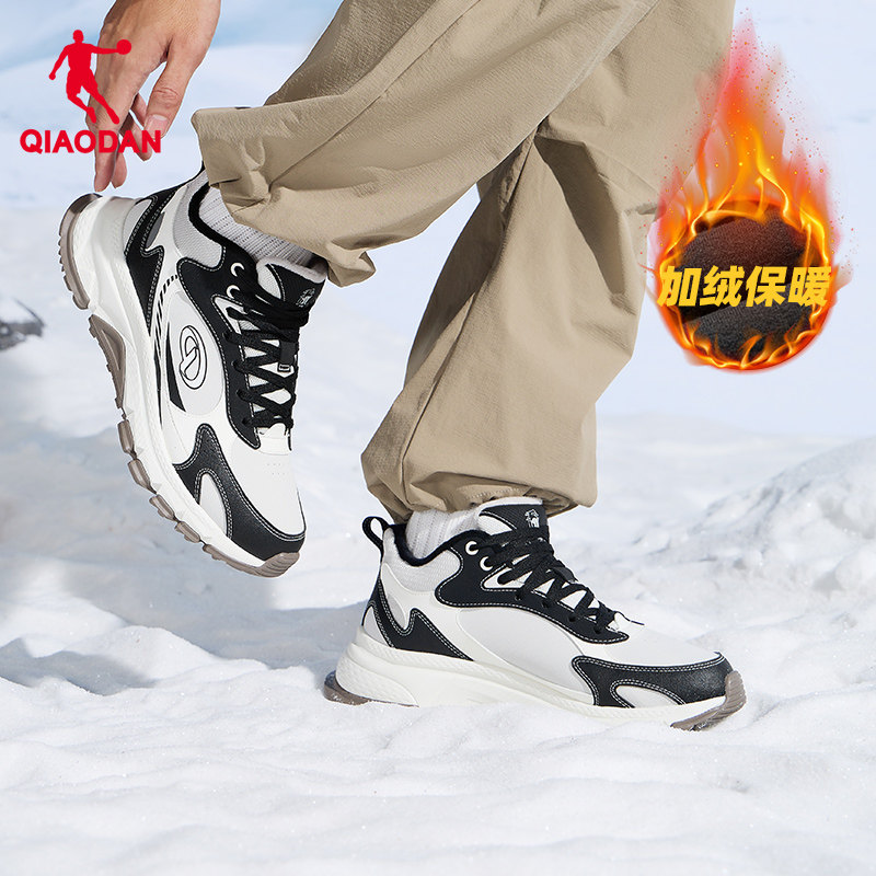 乔丹棉鞋男2025冬季户外高帮加绒保暖运动鞋子皮面防水黑色休闲鞋