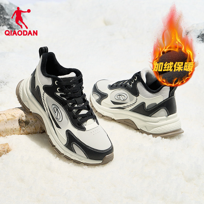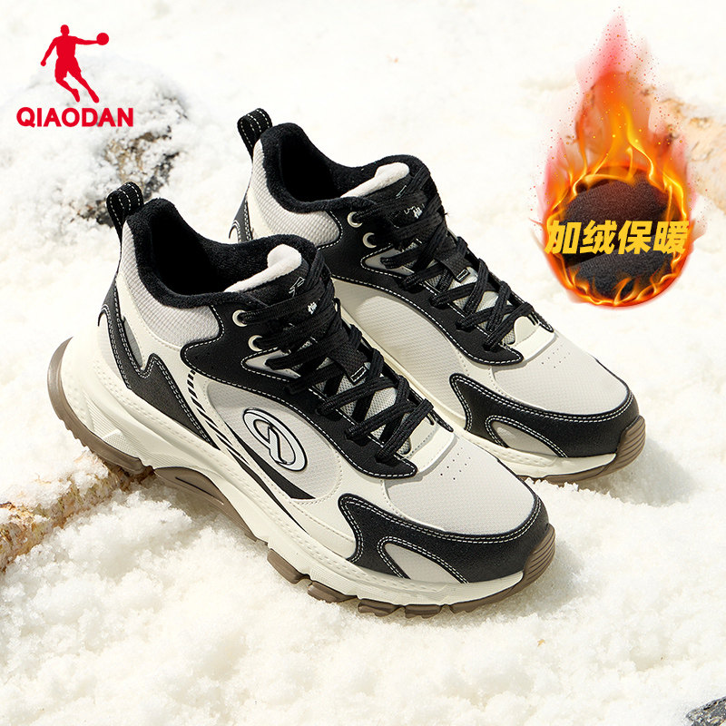乔丹小千禧皮面防水休闲鞋女2025新款加绒保暖老爹鞋学生运动鞋子