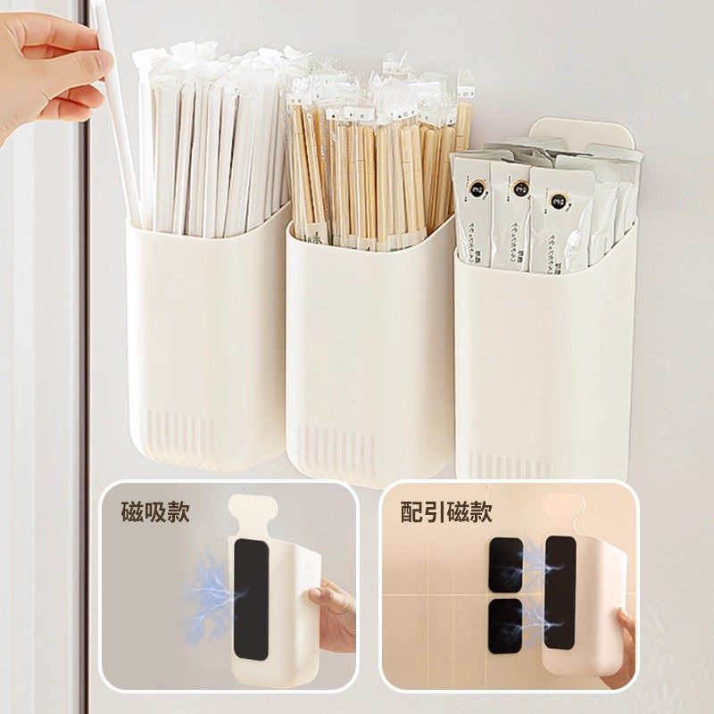 冰箱磁吸收纳盒筷子筒侧面壁挂吸管筷笼筷桶餐具置物架磁铁置物盒