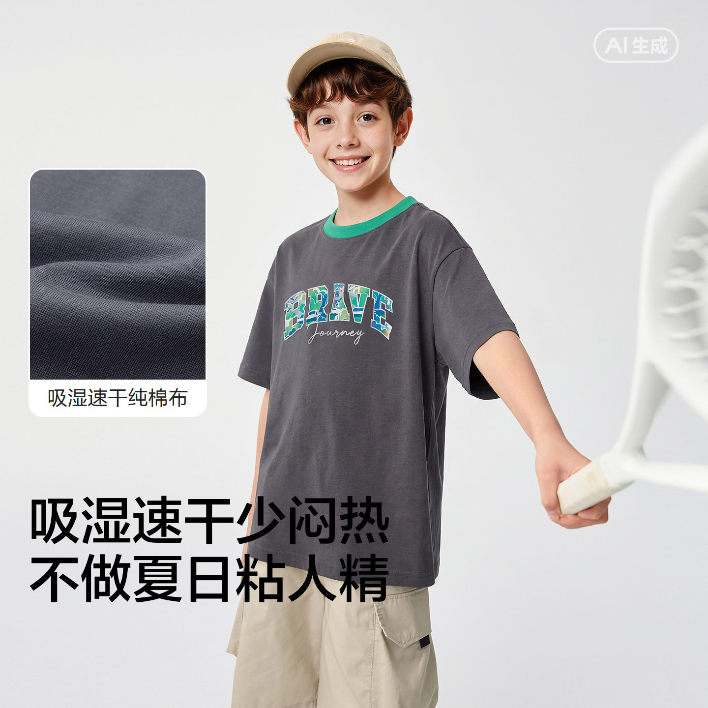 【balaOne】巴拉巴拉童装男童短袖t恤儿童2026新款夏速干纯棉上衣