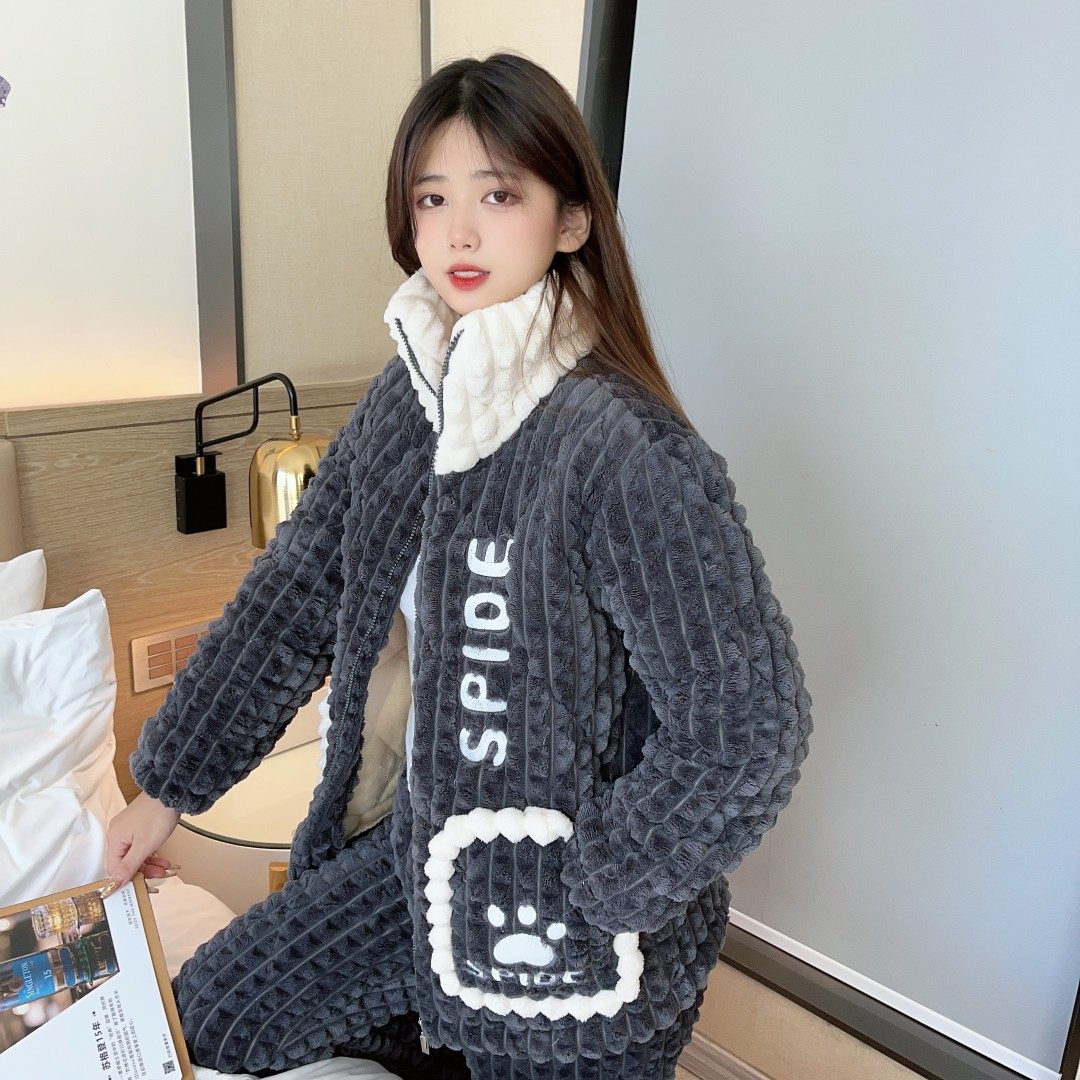 2025年冬款珊瑚绒睡衣女秋冬季加厚法兰绒加绒套装家居服春秋新款