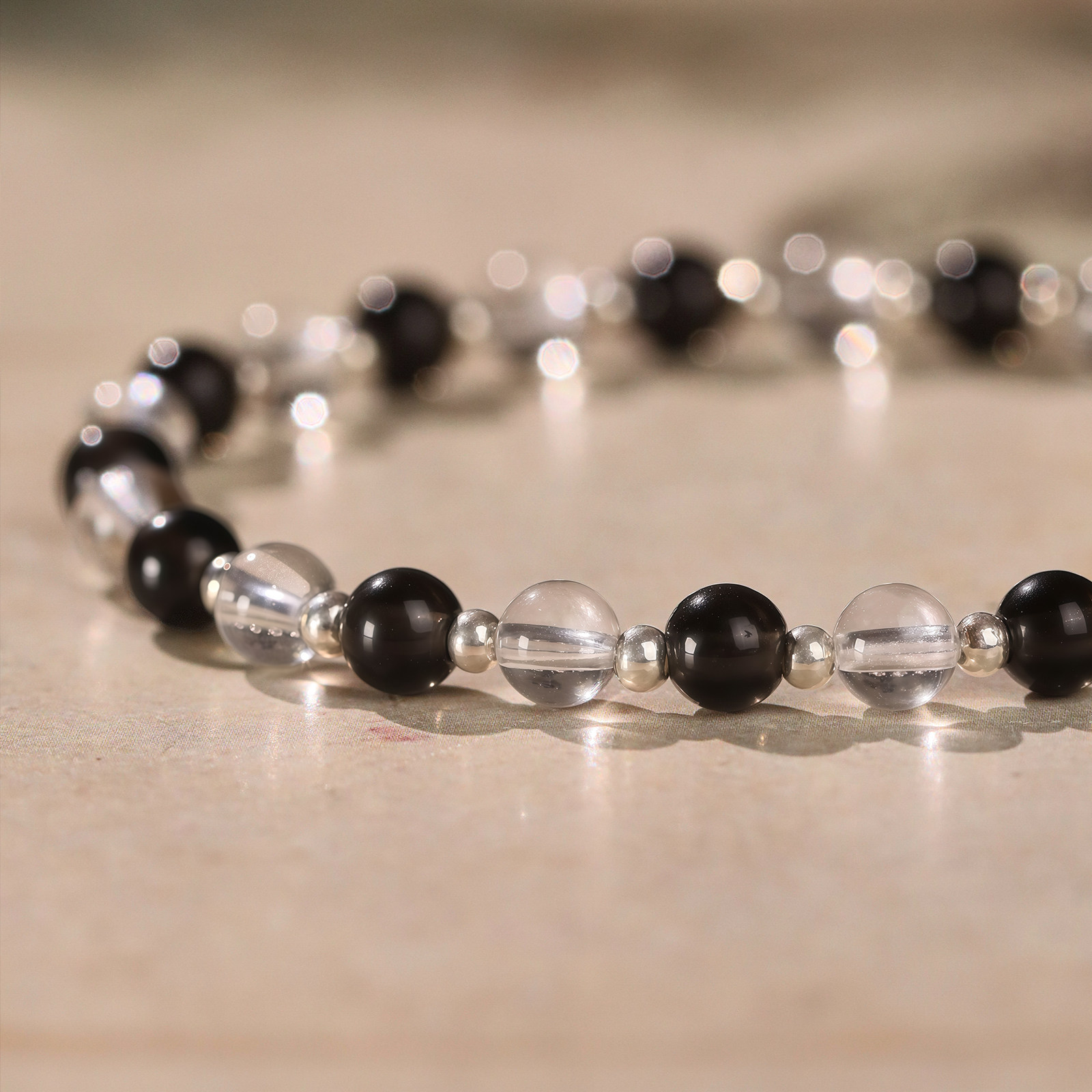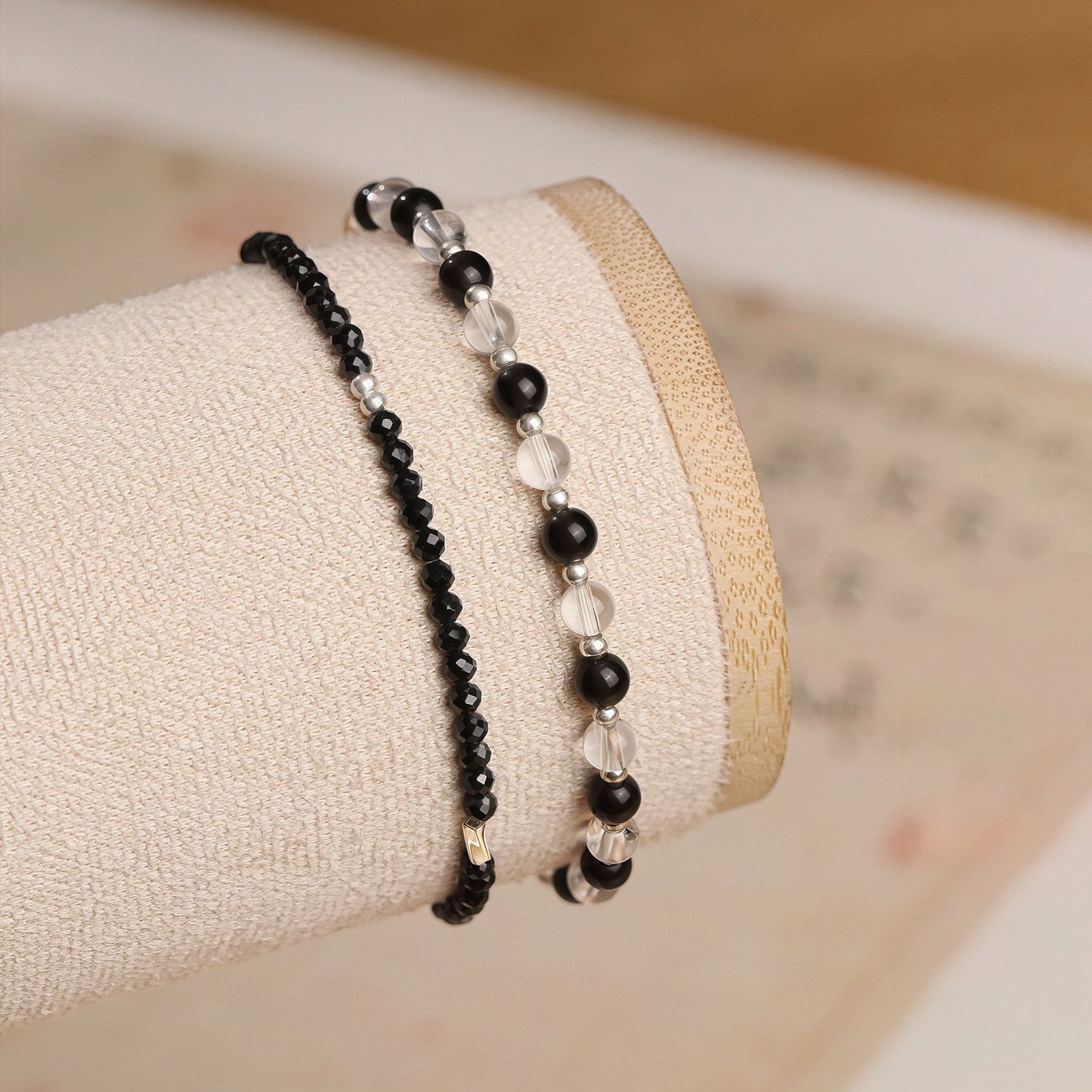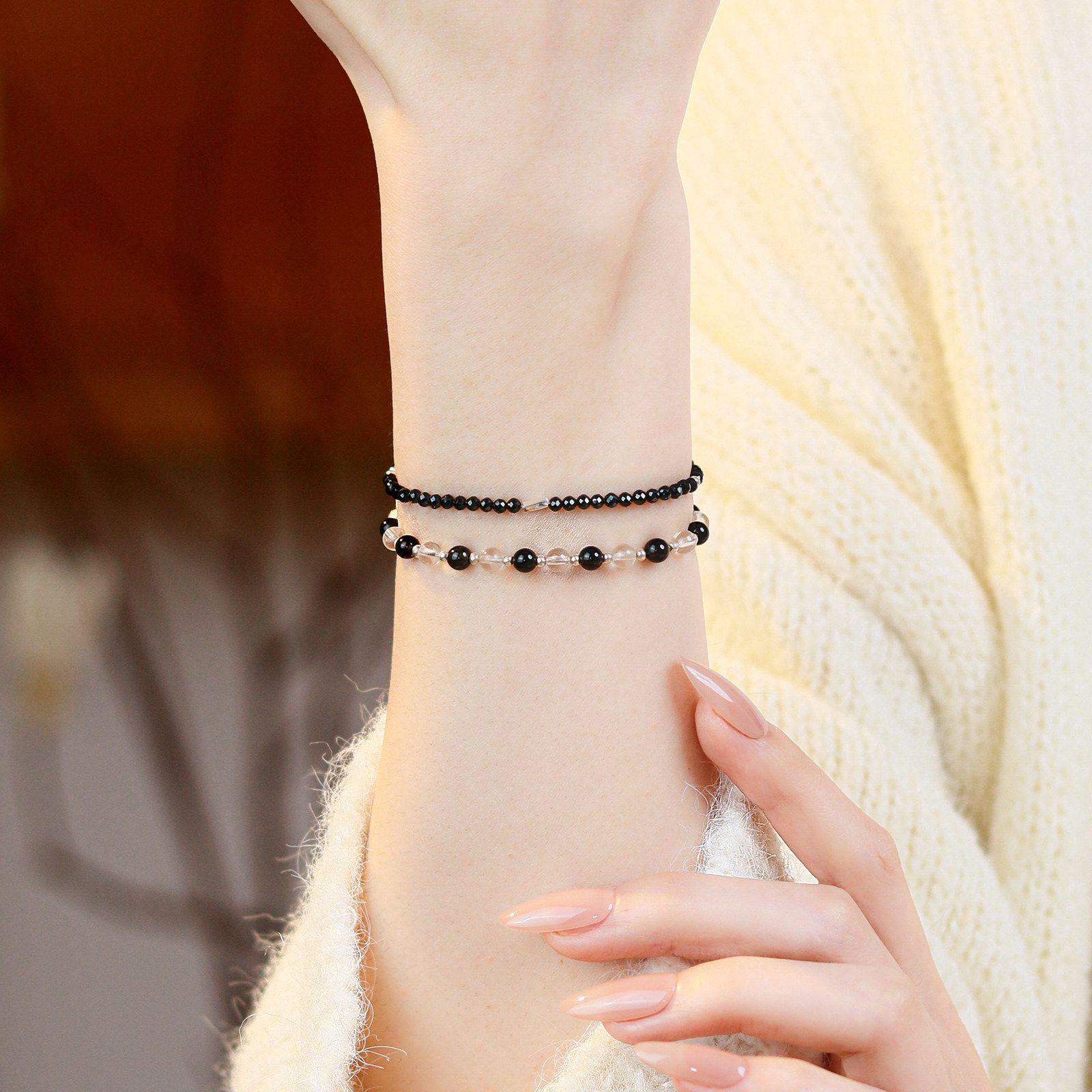 光渊为晚天然黑曜石手串女款黑玛瑙白水晶手链叠戴轻奢小众精致