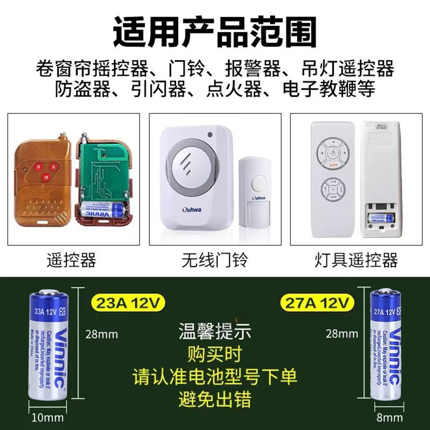23A12V电池27a12v吊灯风扇灯电动车库卷帘门铃道闸遥控器小电池