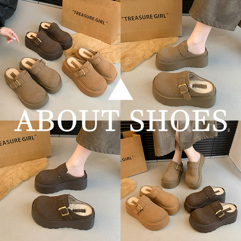 叁叔家~内增高勃肯鞋女加绒秋冬保暖毛毛半拖外穿厚底博肯鞋