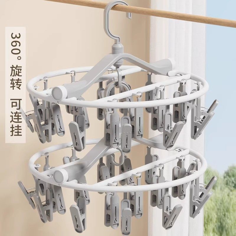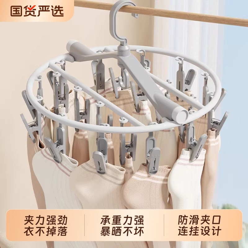 特粗晾袜子衣架多夹子防风家用不锈钢晾衣夹多功能挂钩晒袜子神器