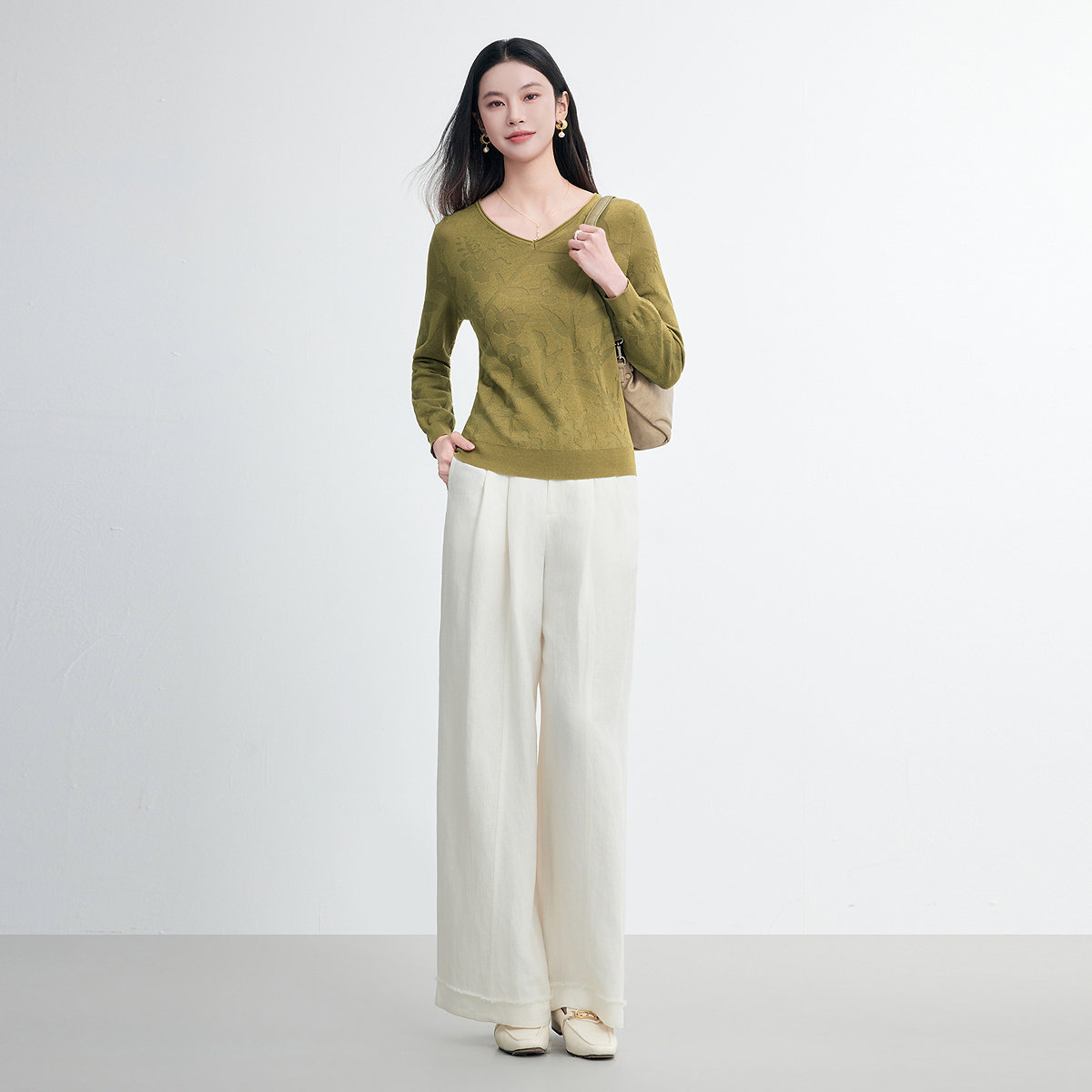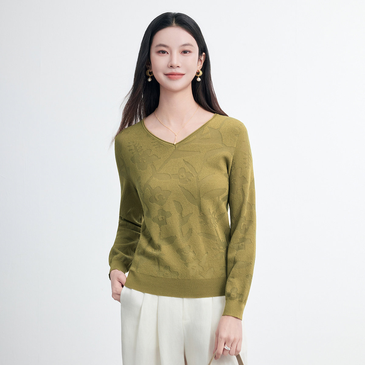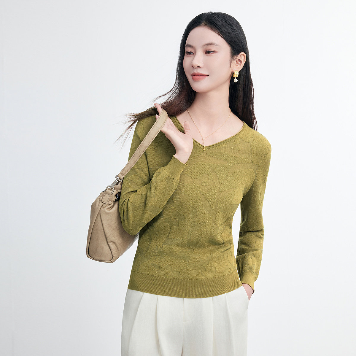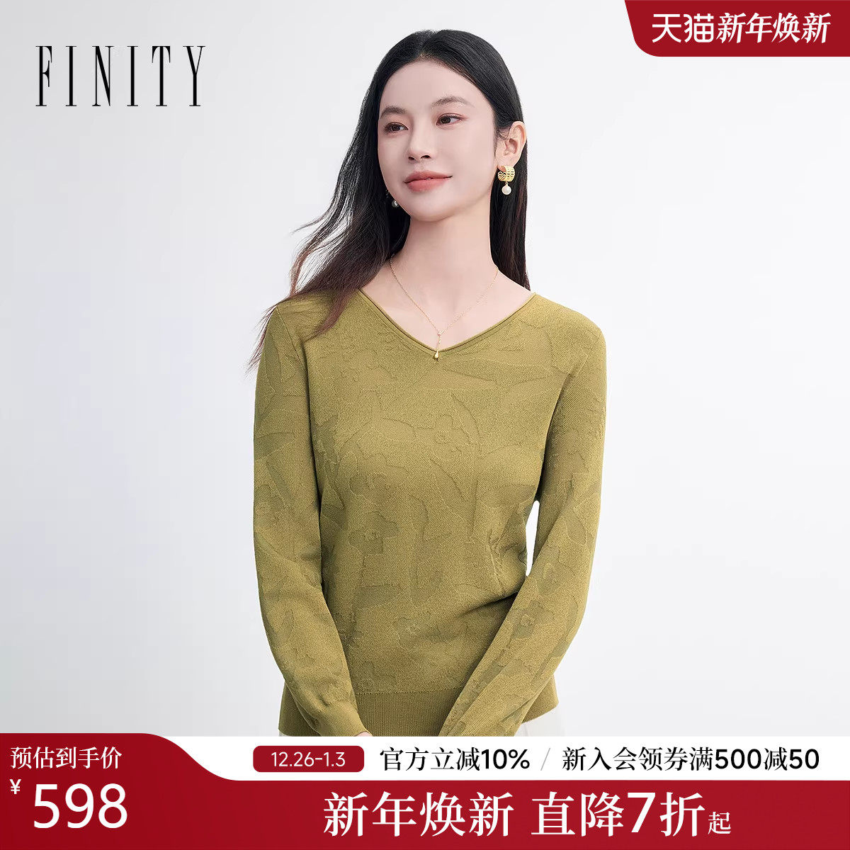 FINITY菲妮迪羊毛衫2026年春季新款简约气质V领黄绿百搭上衣女士
