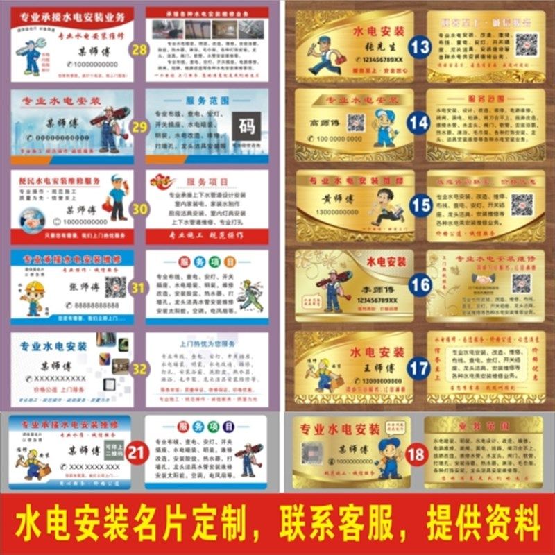 水电安装维修名片制作家政保洁家装装修装潢木工瓦工电工名片定制