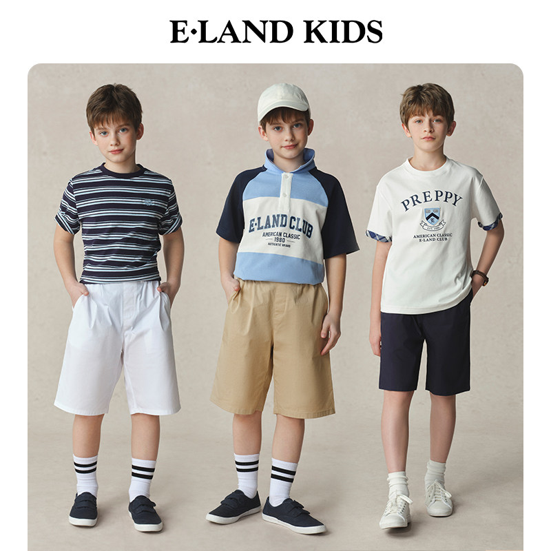 eland kids衣恋童装男童五分裤2025年夏新品女童学院风开学短裤