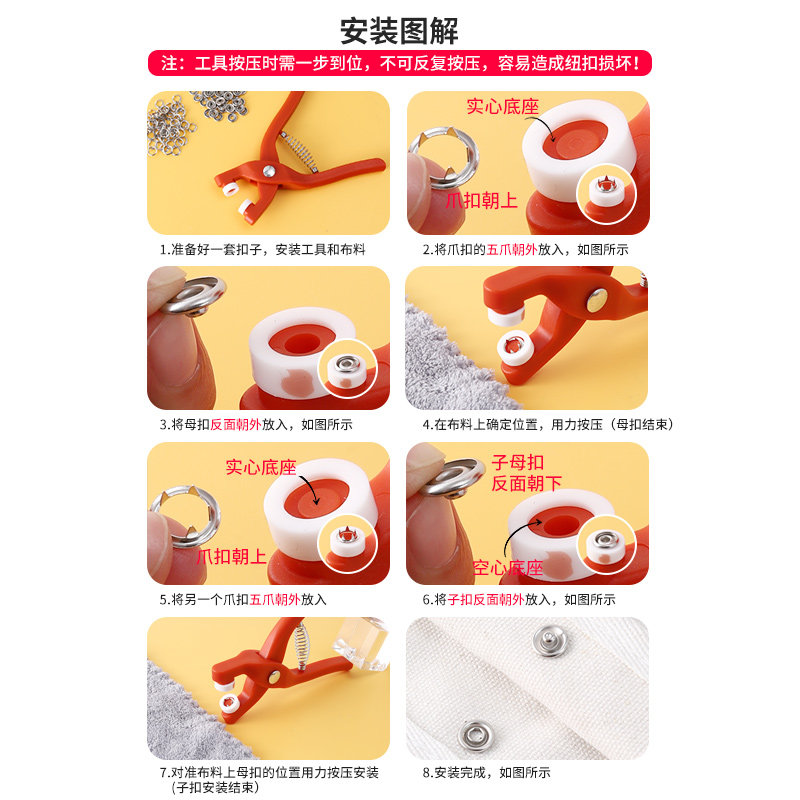 五爪扣按扣免缝钉扣安装套装扣子手压钳工具子母扣暗扣鞋子金属