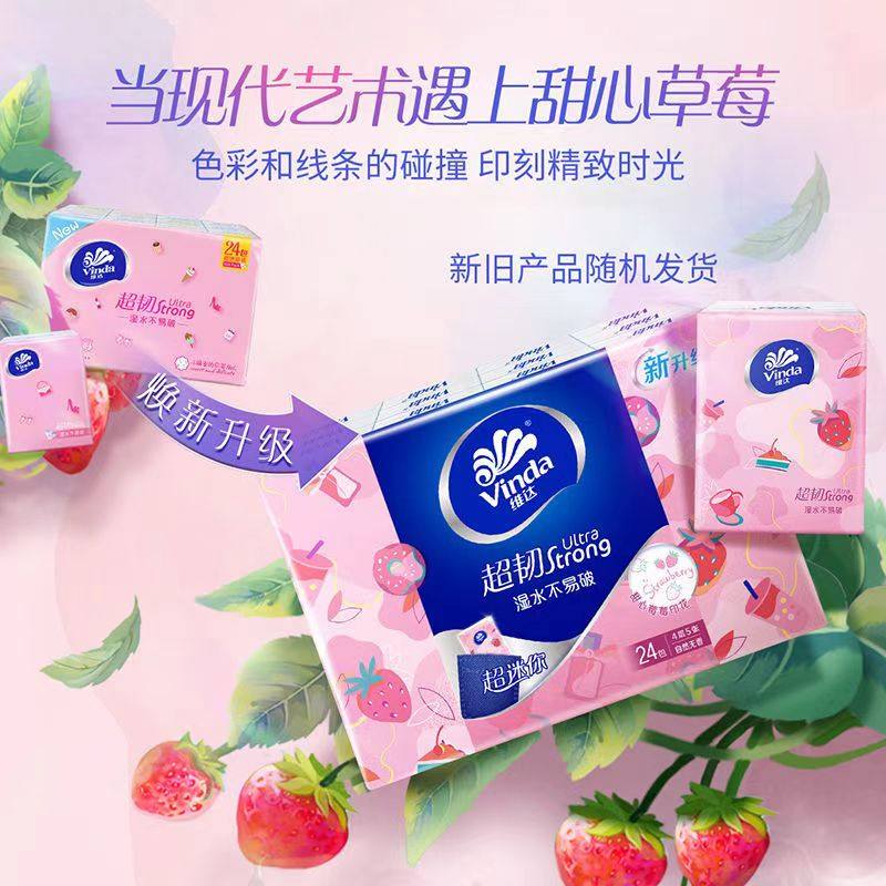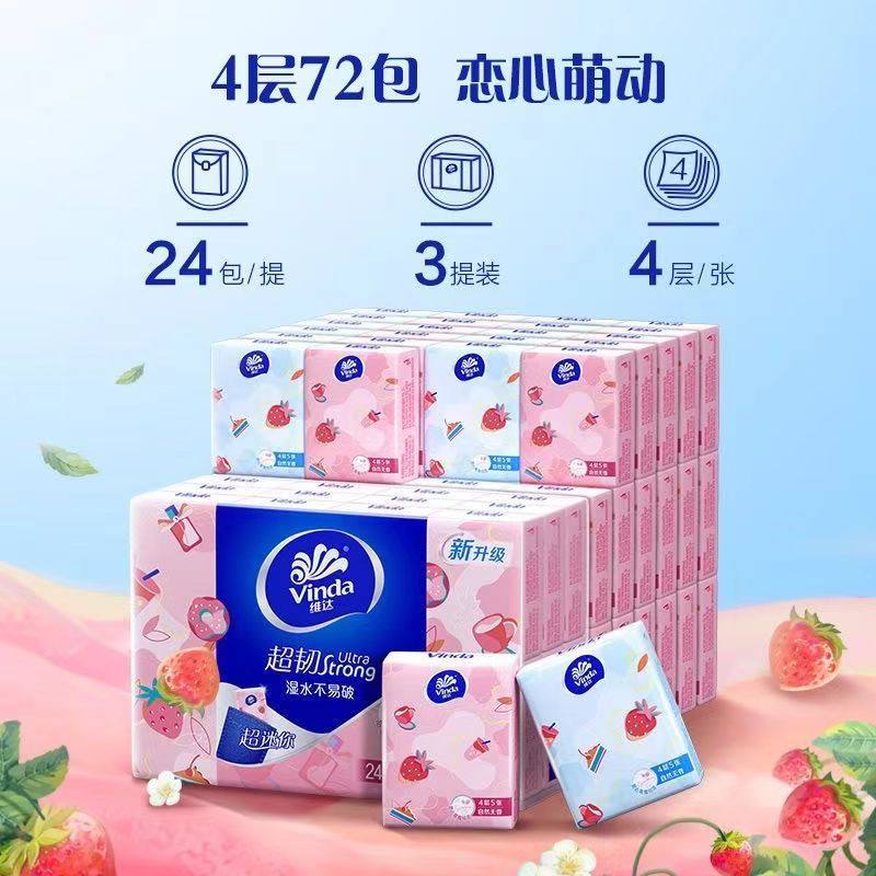 维达手帕纸甜心草莓印花72包口袋纸巾小包面巾纸随身便携学生实惠