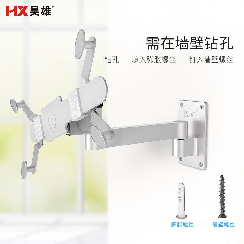 平板电脑支架IPAD12345万向铝合金挂墙夹子厨房跑步机床头吊装