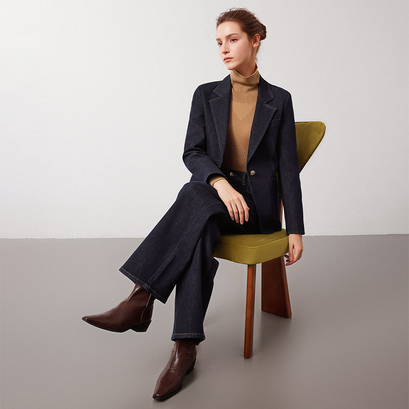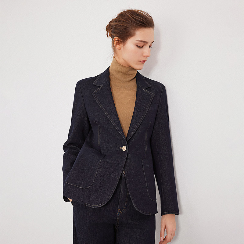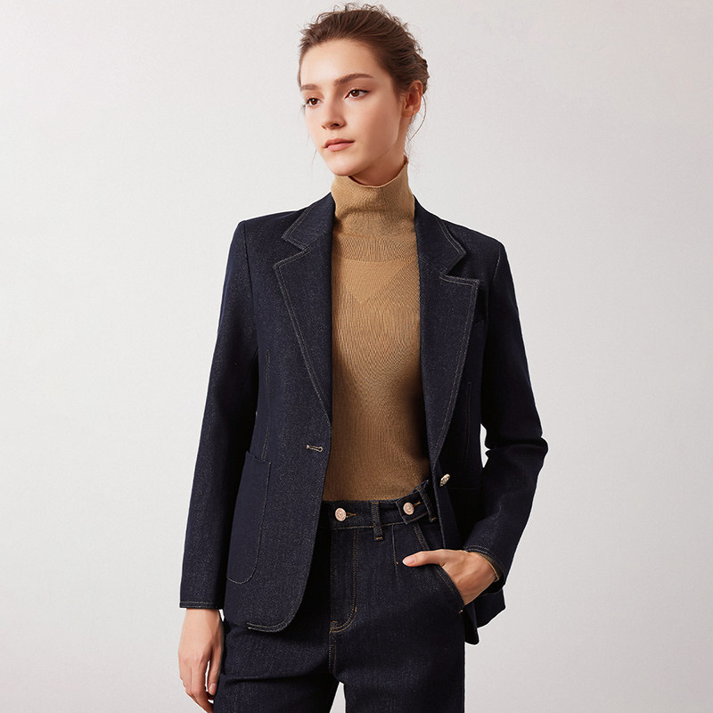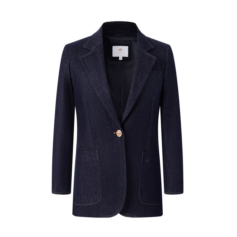 Navigare意大利小帆船蓝色牛仔西服女秋季休闲百搭西装外套