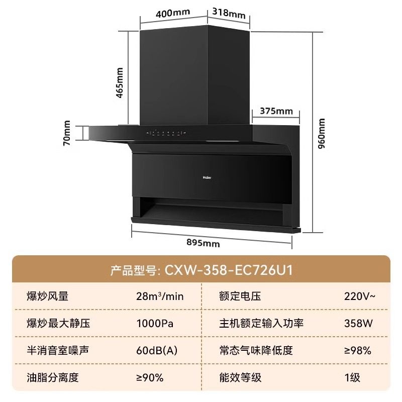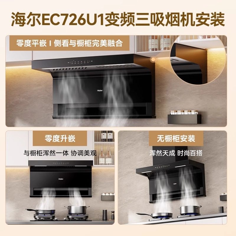 海尔智能顶侧双吸3吸23立方吸油烟机自清洁