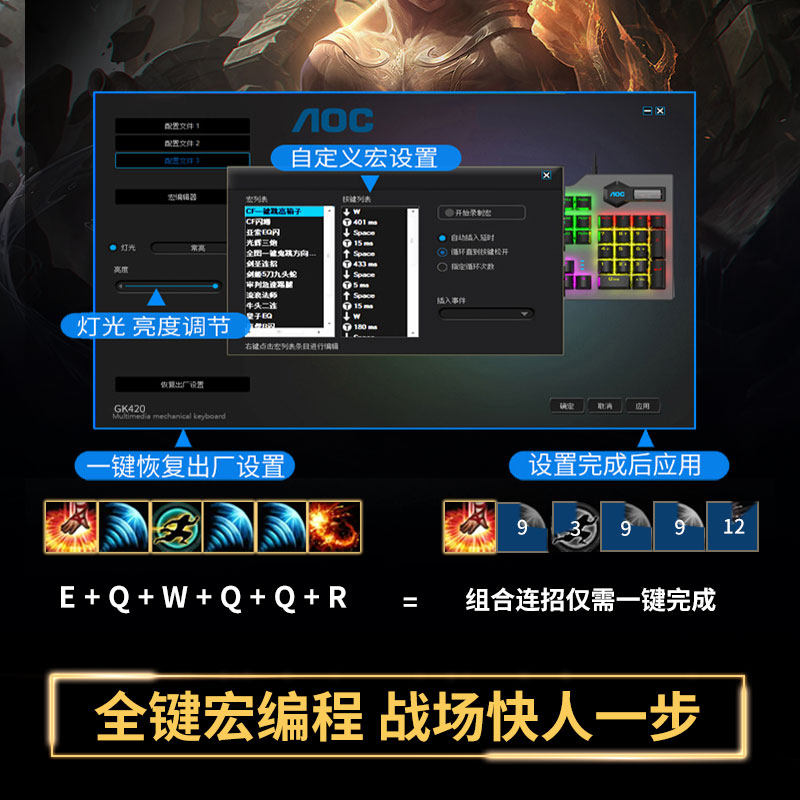 AOC游戏机械键盘青轴黑茶红轴电脑办公电竞宏编程专用有线外设