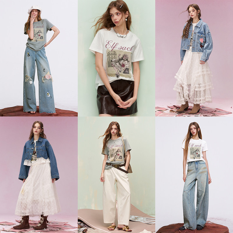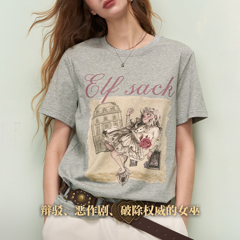 妖精的口袋白色印花正肩短袖t恤女2026年早春新款设计感小众上衣