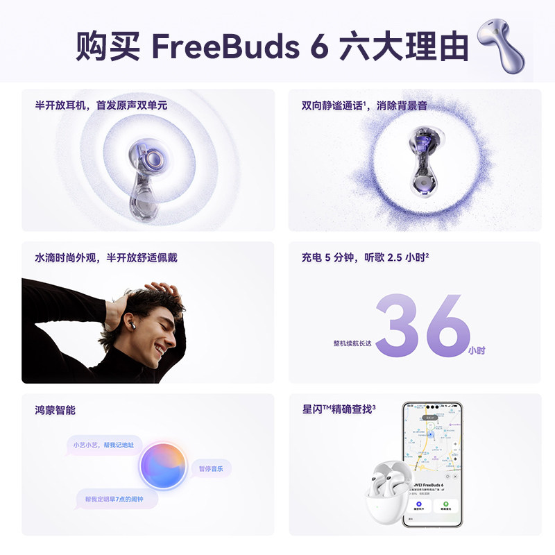 华为freebuds 6悦彰耳机2025新款无线蓝牙降噪水滴型耳机政府补贴