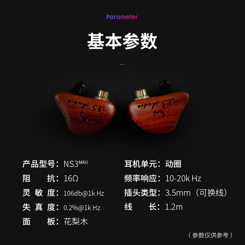 自然声NS3MKII二代花梨木实木面板动圈hifi发烧监听入耳式耳机