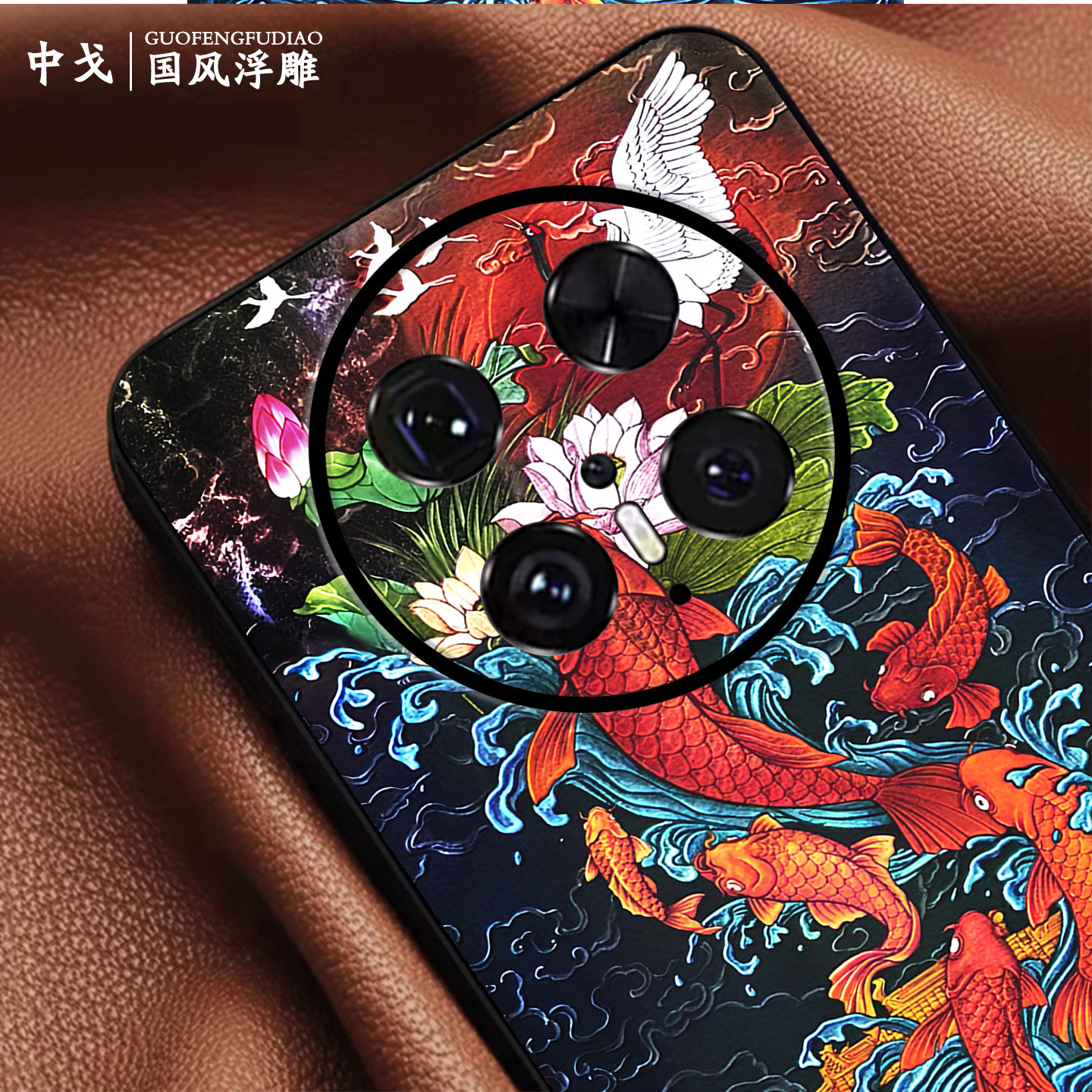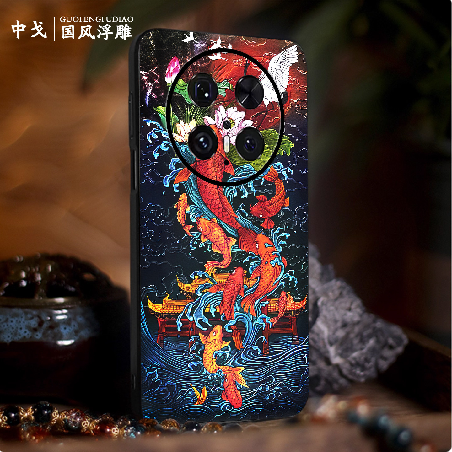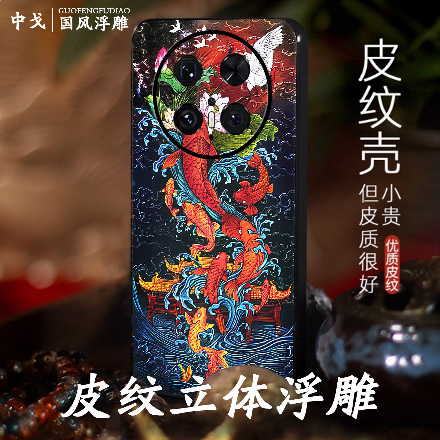 立体浮雕鲤鱼跃龙门适用华为mate70pro+手机壳mate60pro中国风mate50新款nova14pro高级皮纹荣耀magic70全包