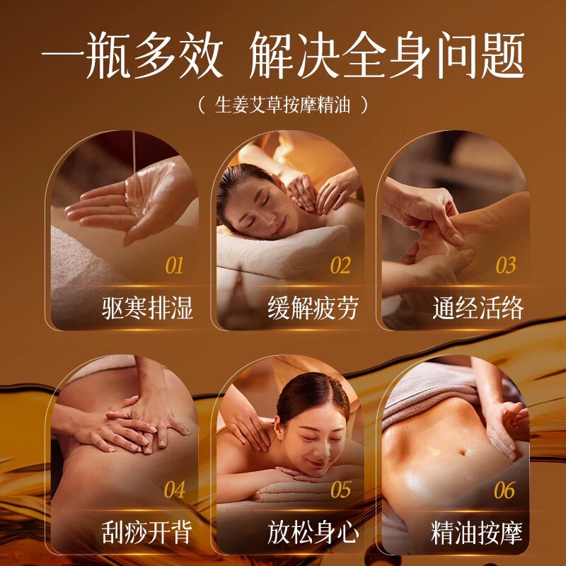艾草生姜按摩精油全身通经络身体刮痧开背油推拿刷腹免洗发热疏通