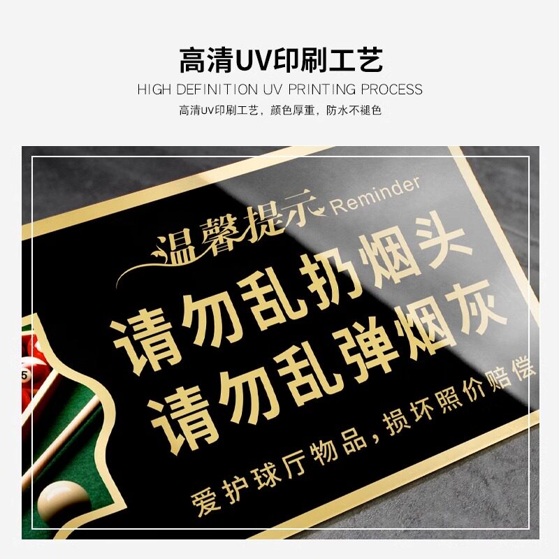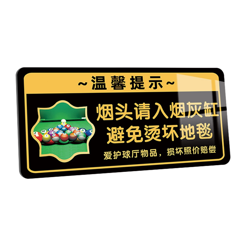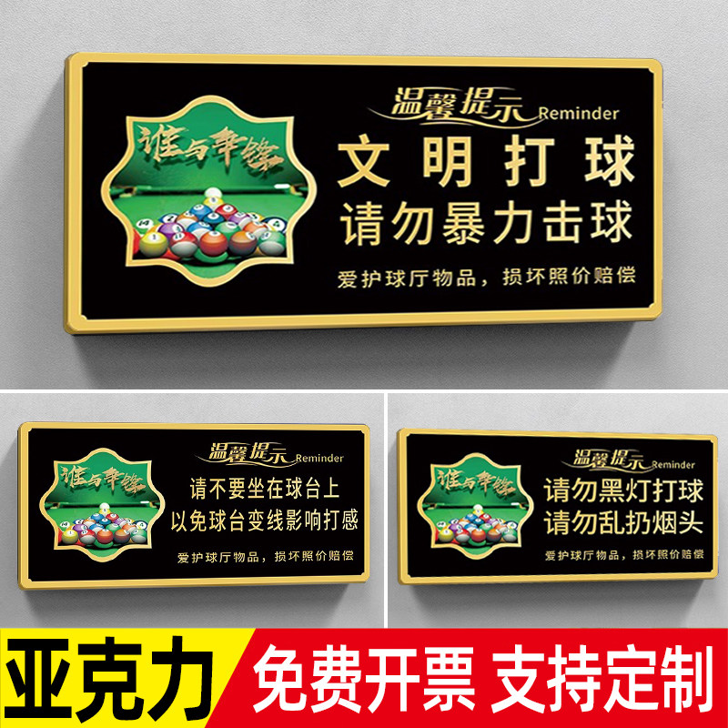 台球厅提示牌台球室温馨标语牌桌球文明打球请勿暴力击球标语指示请爱护球厅物品损坏照价赔偿亚克力墙贴纸