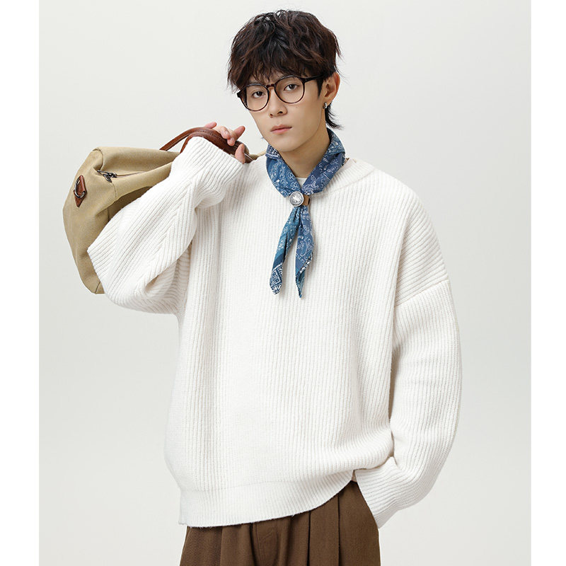 马登工装美式复古雪尼尔圆领毛衣保暖慵懒内搭打底针织衫男秋冬季