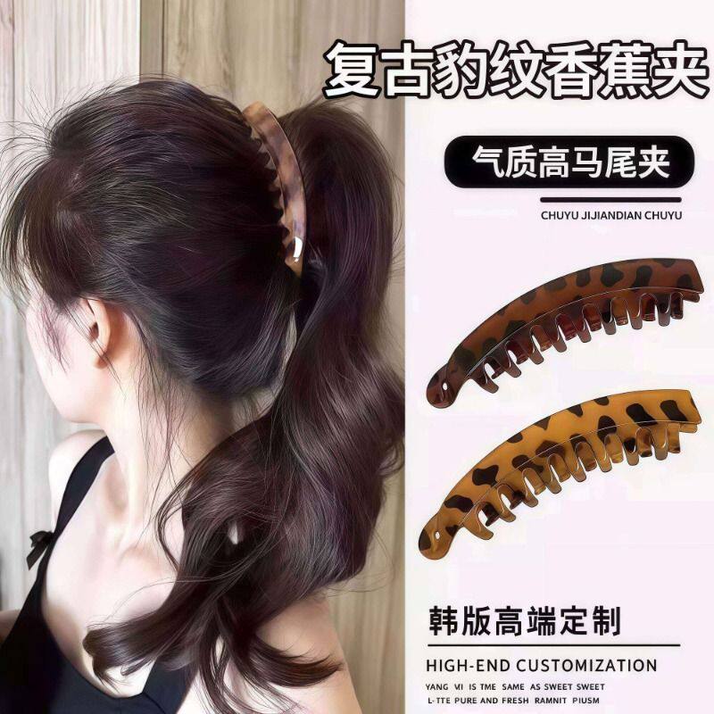 豹纹香蕉夹发夹女2026新款高级感气质扭扭夹竖夹后脑勺高马尾抓夹
