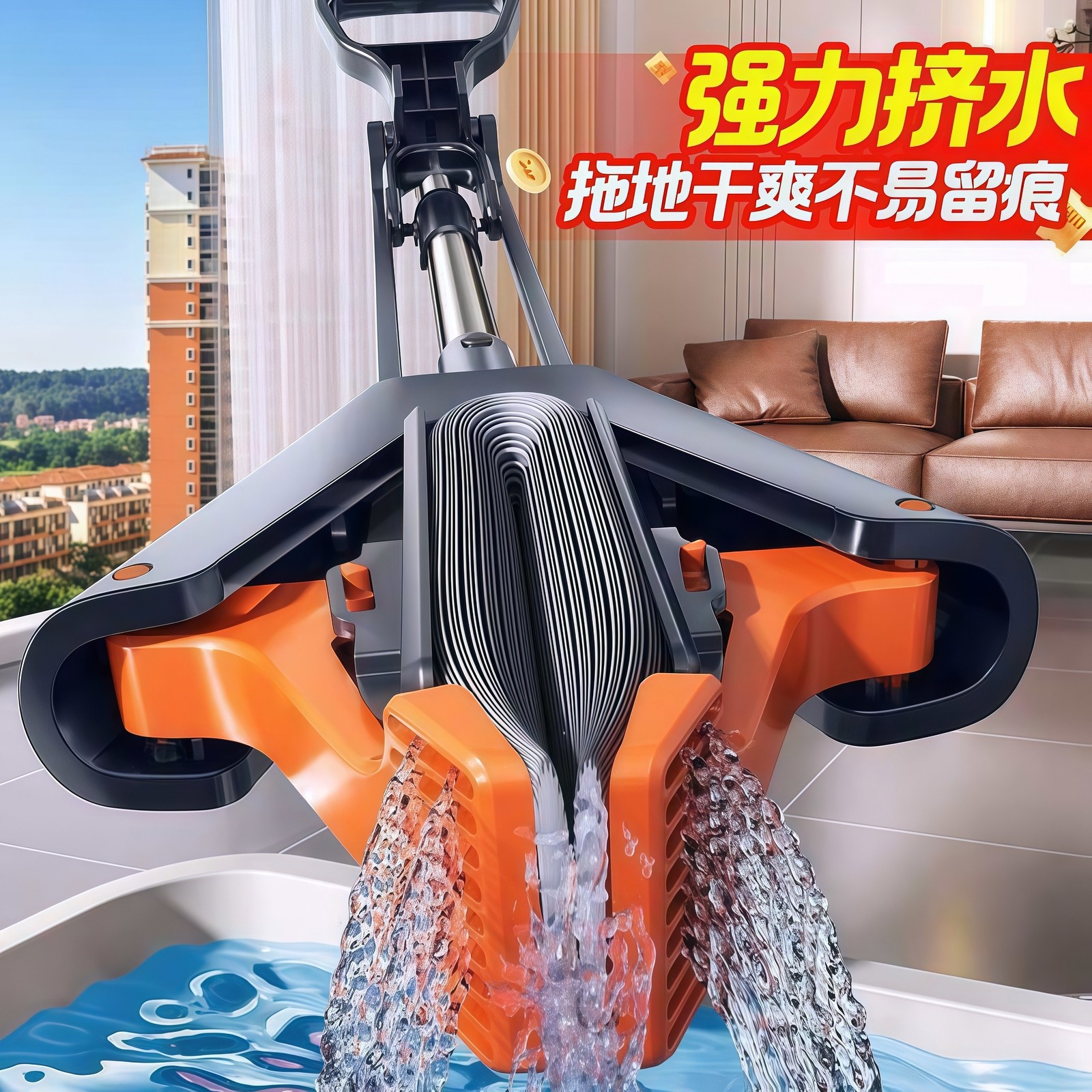 海绵拖把免手洗2025新款一拖家用吸水地拖神器净墩布胶棉头对折式
