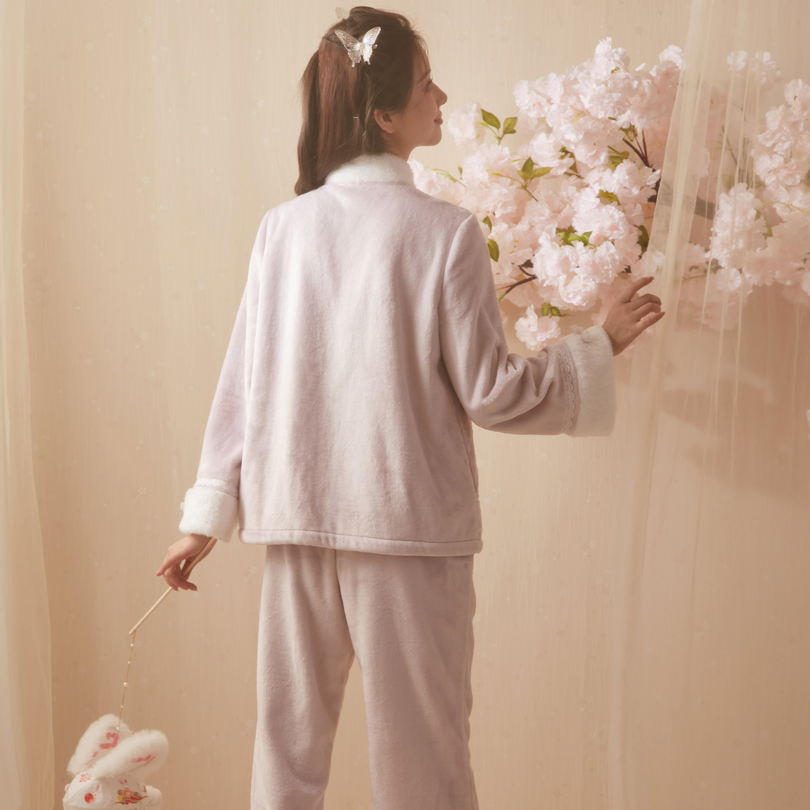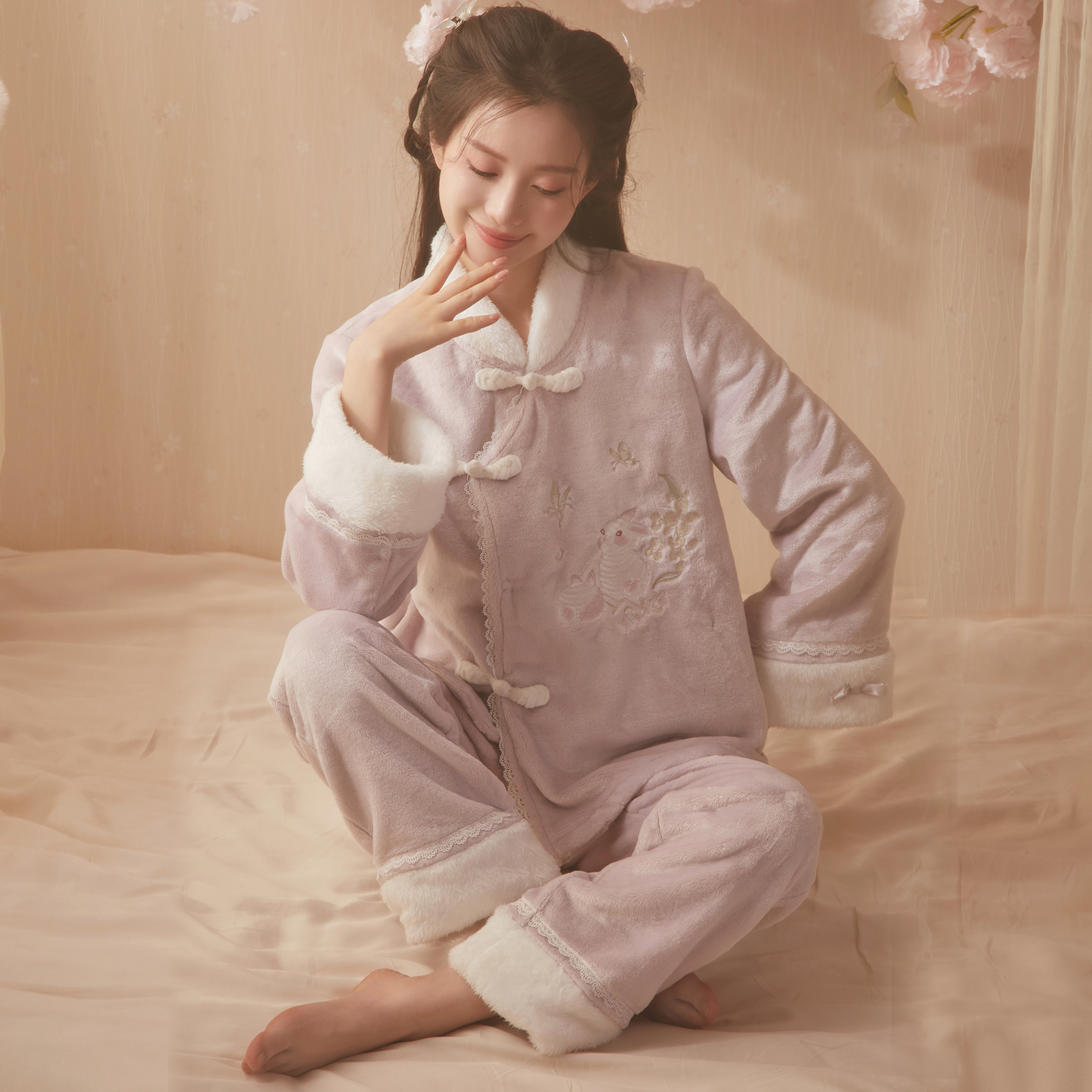 RoseTree珊瑚绒睡衣女款秋冬季新中式国风汉服加绒加厚家居服套装