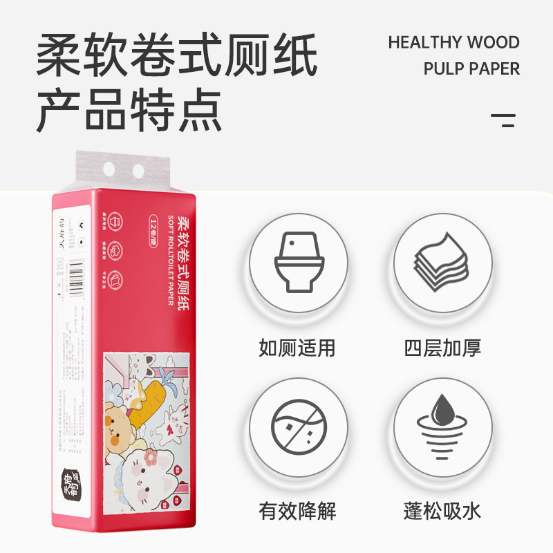 60卷无芯卷筒纸家用实惠装批发卫生纸卷纸餐巾纸面巾纸卷纸巾竹浆