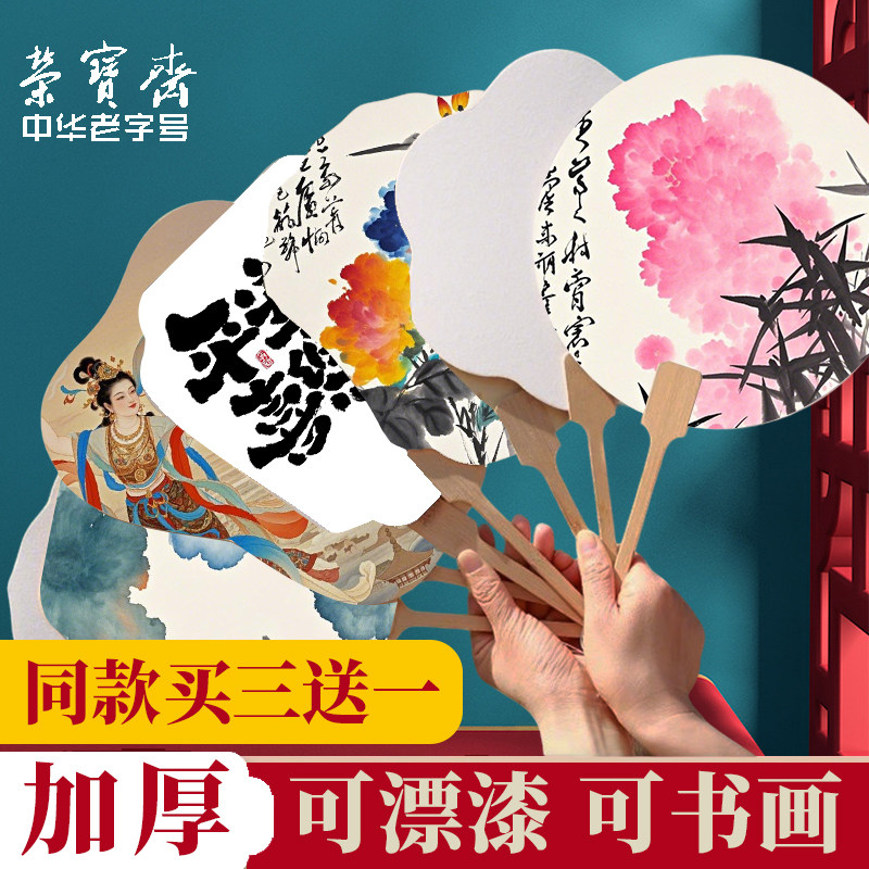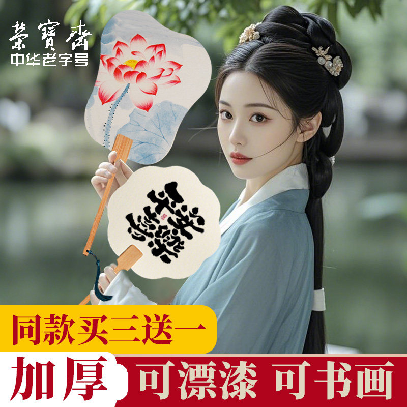 荣宝斋日星空白团扇宣纸扇子古风卡纸扇面非遗漆扇专用diy材料