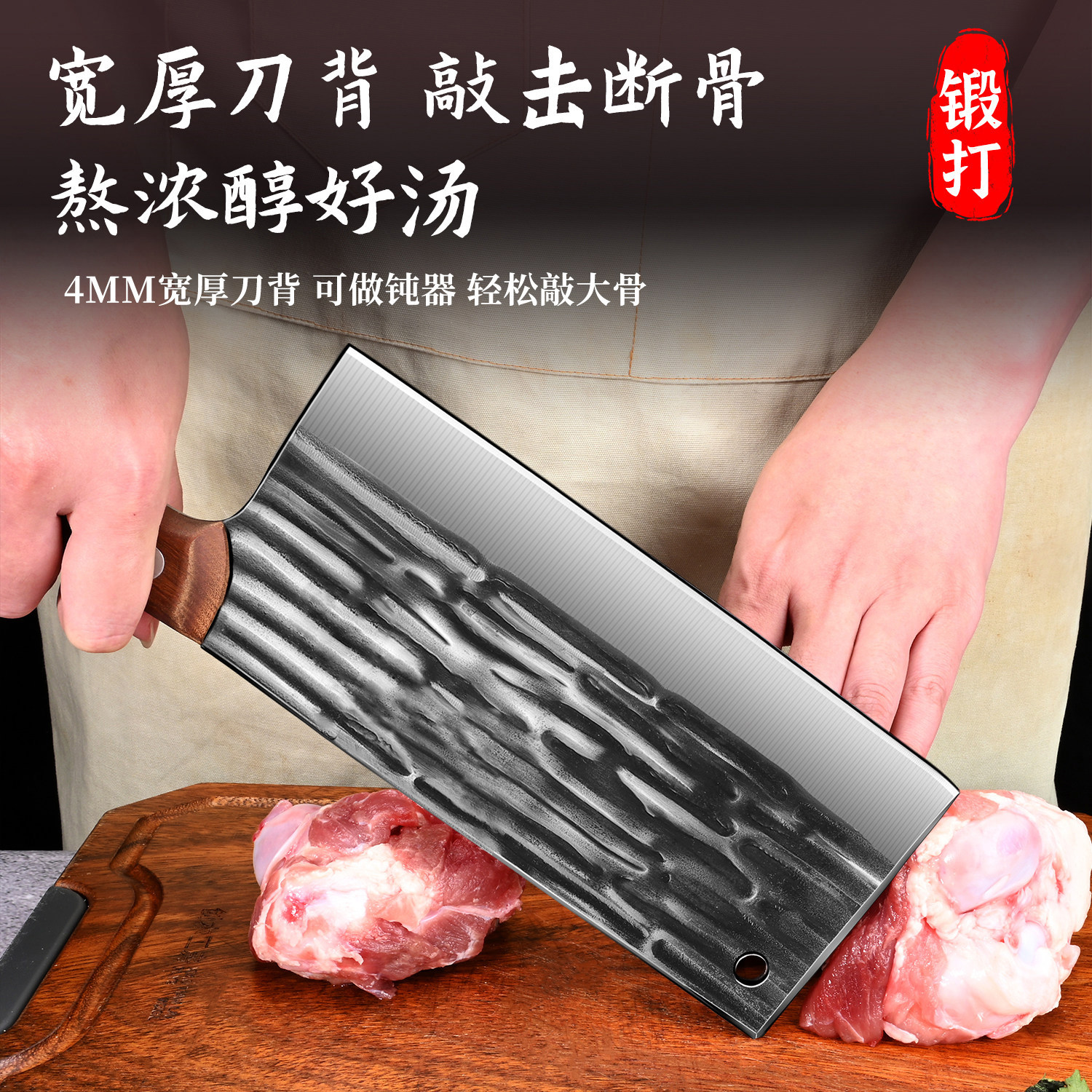 手工锻打斩切两用切菜刀砍骨头家用不锈钢厨房超快刀具开刃锻造
