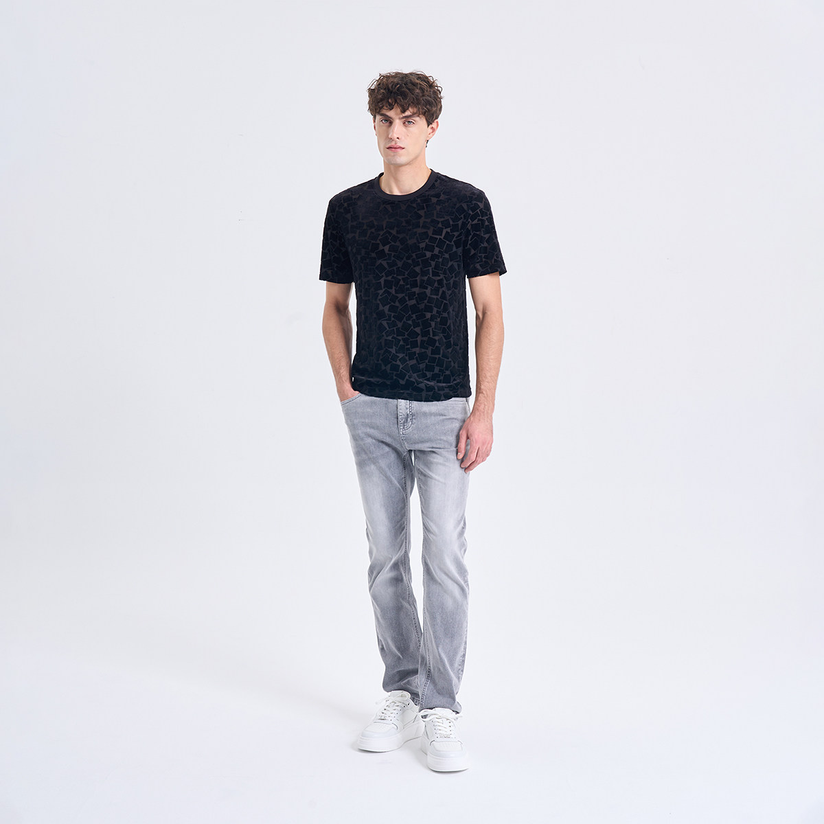 RARE威雅男装 2026夏季新款时尚百搭T恤男士黑色圆领短袖T恤