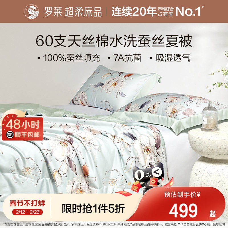 罗莱家纺100%蚕丝被子夏凉被四件套单双人可机洗地暖被空调被芯