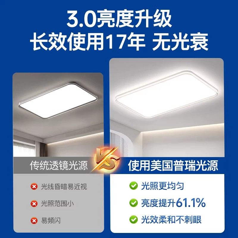 长虹客厅灯无缝隙吸顶灯护眼客厅主灯2025年新款广东中山灯具套餐