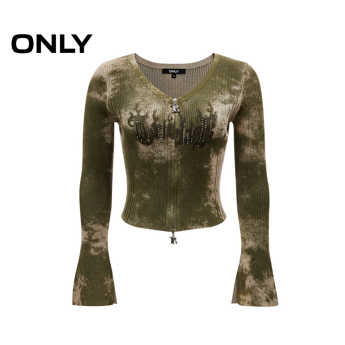 修饰脸型V领 字母双向拉链 酷感扎染工艺