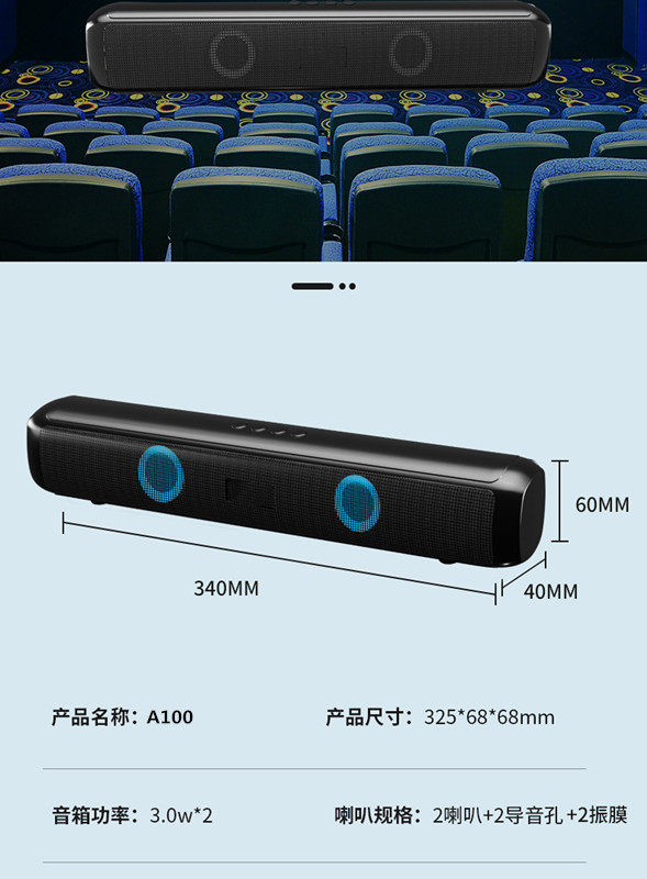 无线蓝牙音箱电脑台式家用笔记本桌面长条音响彩灯多媒体插卡礼品